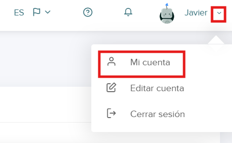 2 - En la esquina superior derecha, abrir las opciones de usuario de la cuenta, donde encontrará las siguientes opciones: