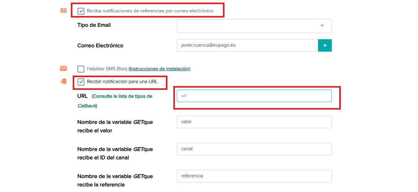 Cada integración, ya sea con una plataforma o un software, tiene su propia configuración. Si necesitas ayuda para saber cuál es la URL de callback correcta para tu plataforma, consulta este artículo del Centro de Ayuda de Eupago.