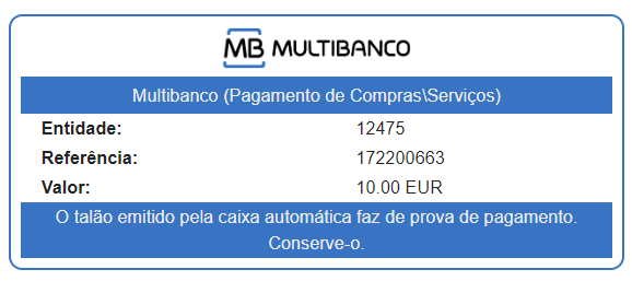 Multibanco es el medio de pago realizado a través de cuentas bancarias portuguesas utilizando la funcionalidad de Pago por Servicios.