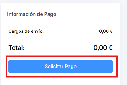 Una vez completados todos los apartados, haga clic en 'Solicitar pago' para finalizar.